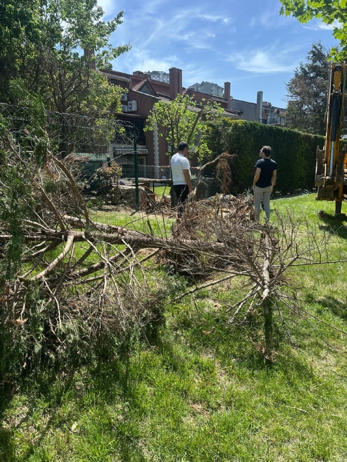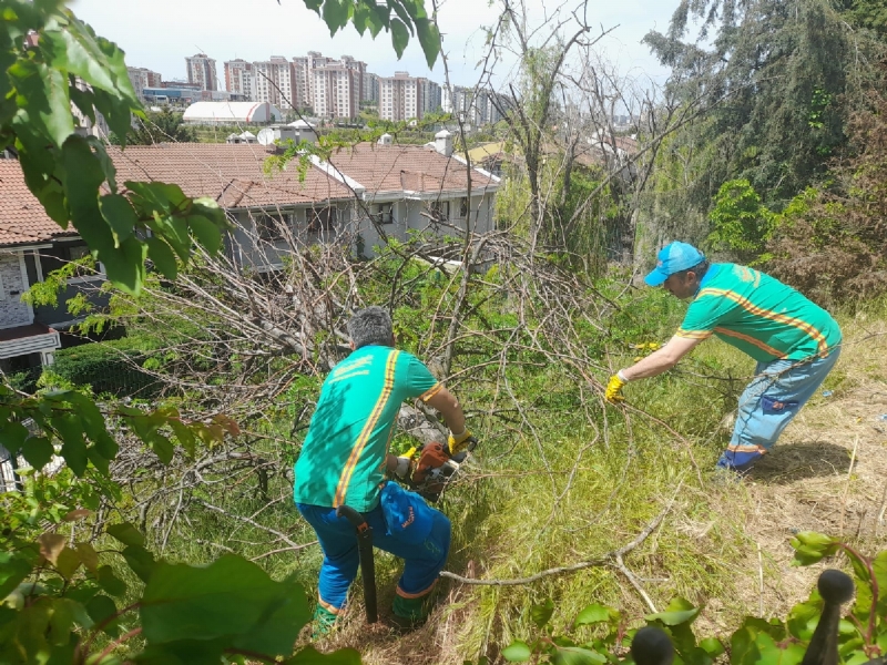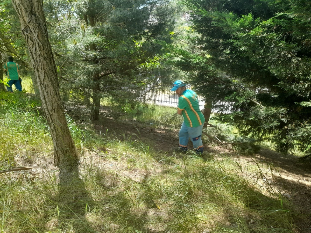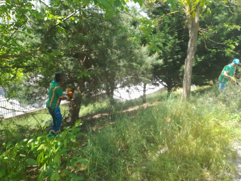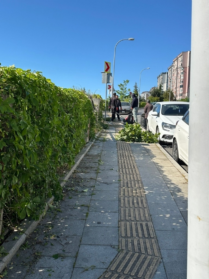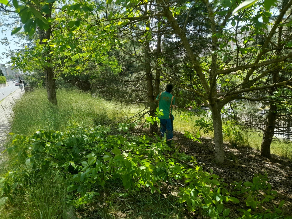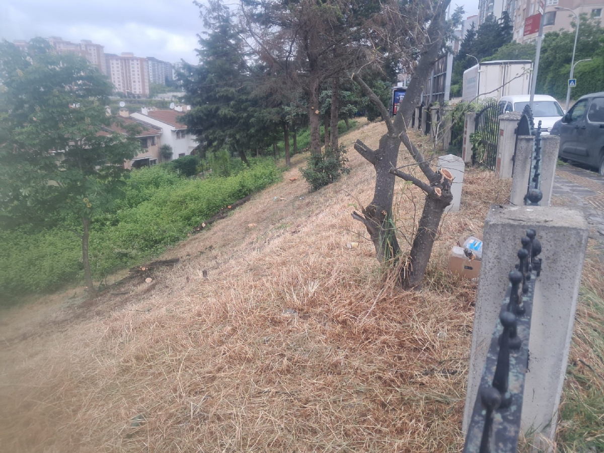 - Durak arkasındaki alandaki ağaçlar budandı ve otlar biçildi.